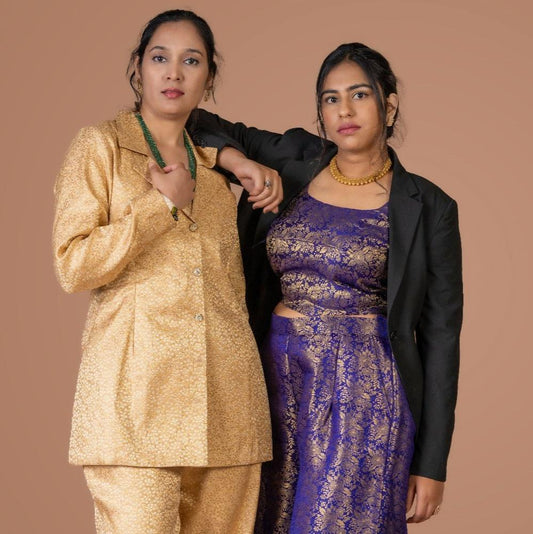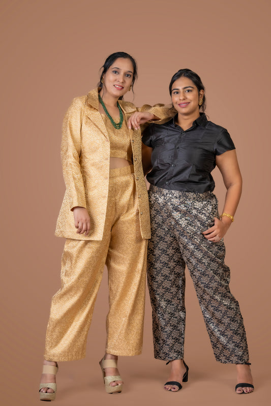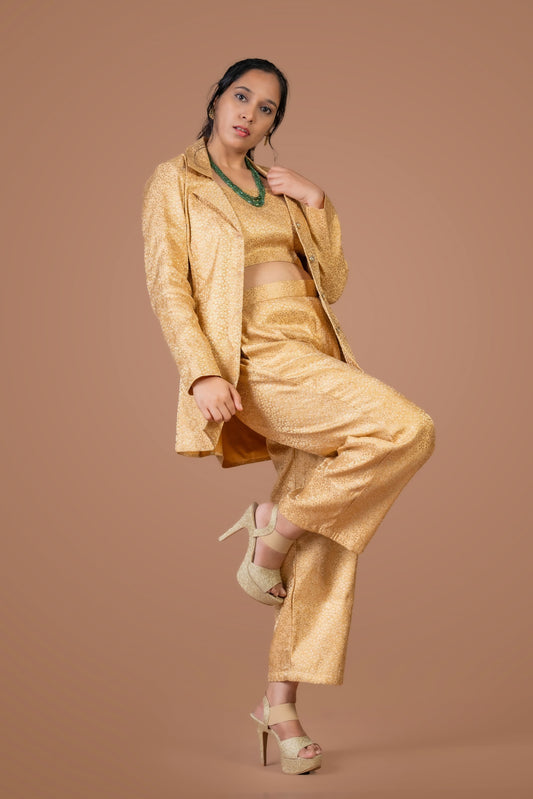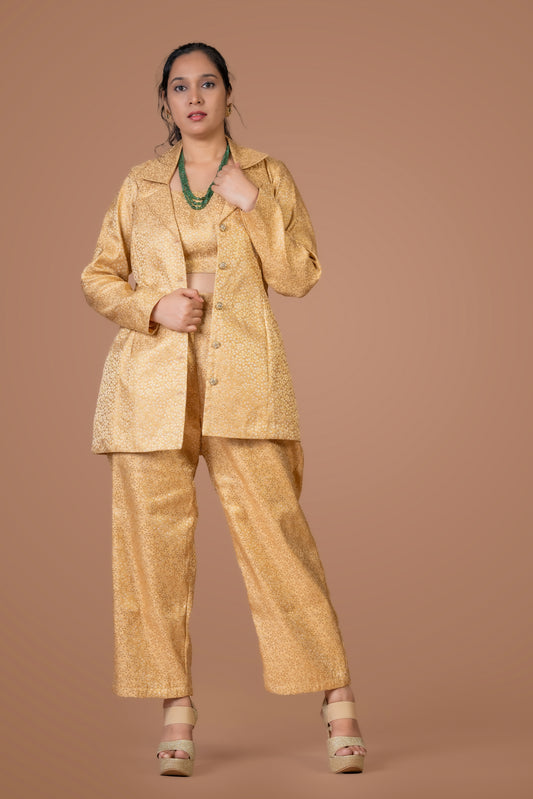 Golden Brocade Pant Suit Co-ord Set